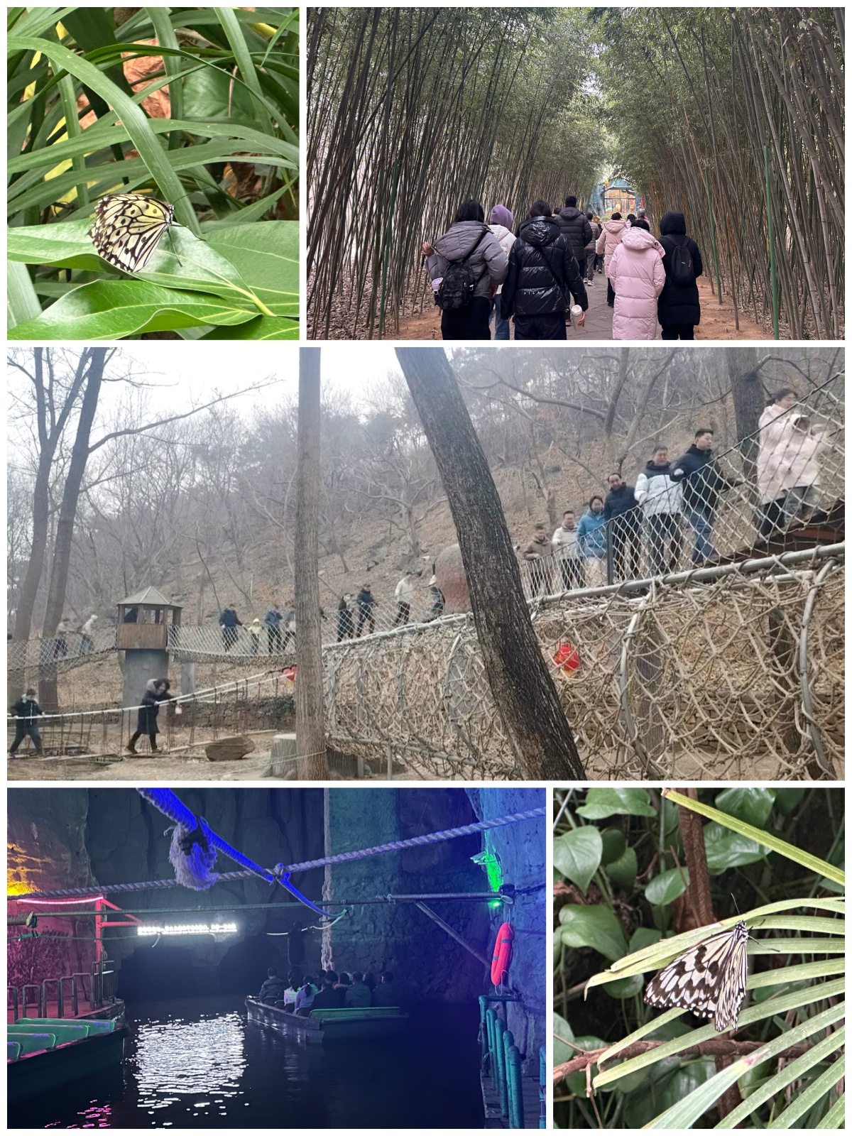 次日的旅程,是与自然奇观的邂逅。在蝴蝶谷,大家带着十足的兴致四处寻觅,目光追随着纷飞的蝴蝶,孩子们更是雀跃不已;进入地下暗湖,乘一叶小舟,体验萤火虫静谧的世界,漫天萤光犹如晴朗夜空中繁星闪烁,让大家直呼震撼;在地下大峡谷的溶洞,大家乘上橡皮艇,顺着蜿蜒的暗河顺势而下,时而平缓滑行,欣赏两侧千姿百态的石笋、石幔;时而急转直下,感受浪花飞溅的刺激,大家忍不住放声尖叫,欢呼声、笑声在幽深的峡谷中久久回荡。